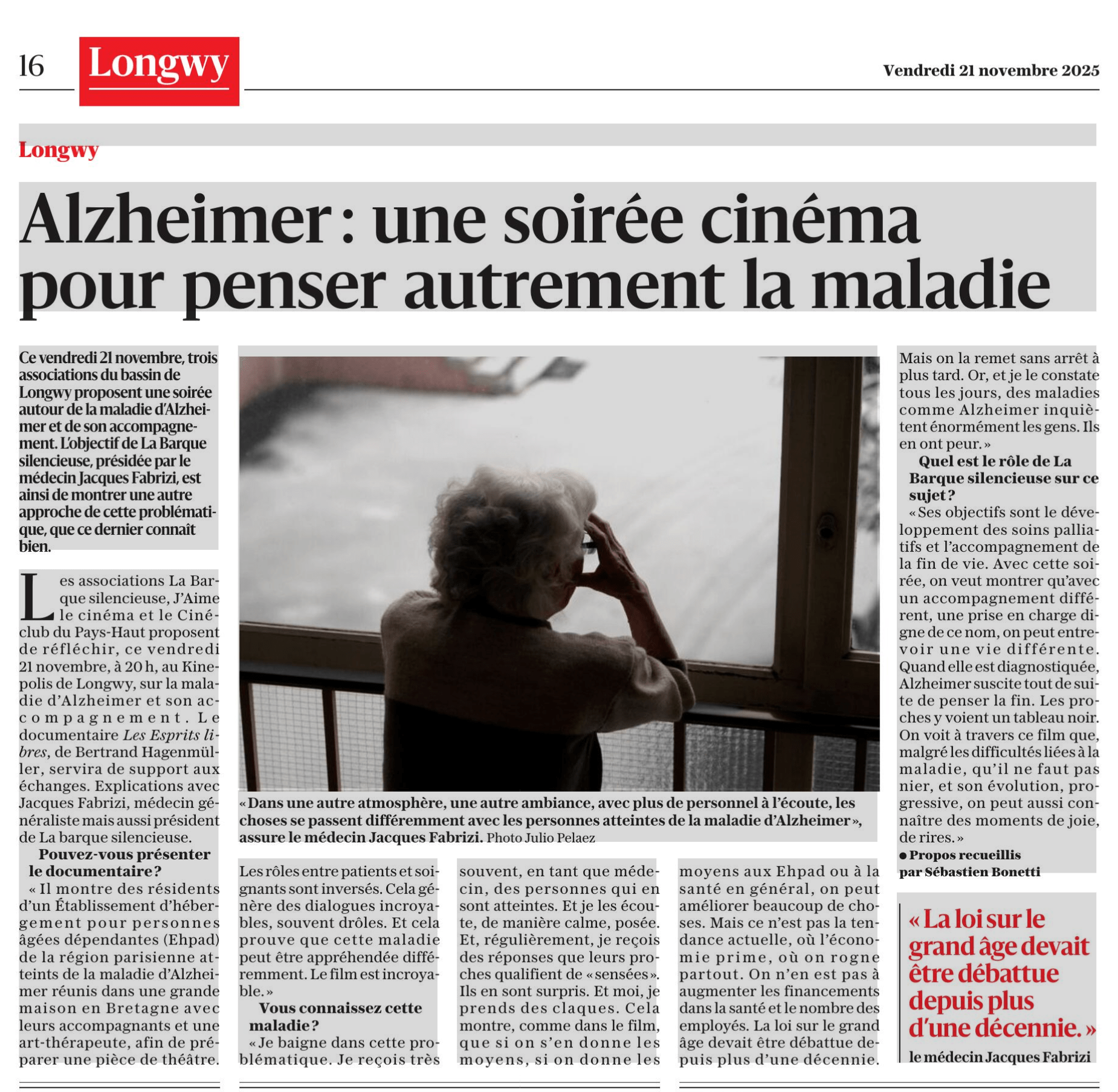 Les Esprits Libres, c’est l’histoire d’une folle aventure où patients atteints de la maladie d’Alzheimer et soignants se rejoignent pour vivre une expérience thérapeutique faite de théâtre, de musique et de poésie. Dans cette grande maison ouverte, l’accompagnement prend une tout autre forme : plus de blouses blanches ni de couloirs aseptisés mais des esprits libres et bien vivants.